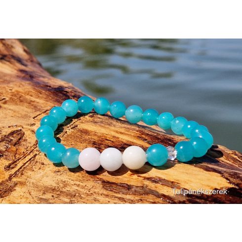 Kék laguna karkötő, Amazonit, Berill és Hegyikristályból