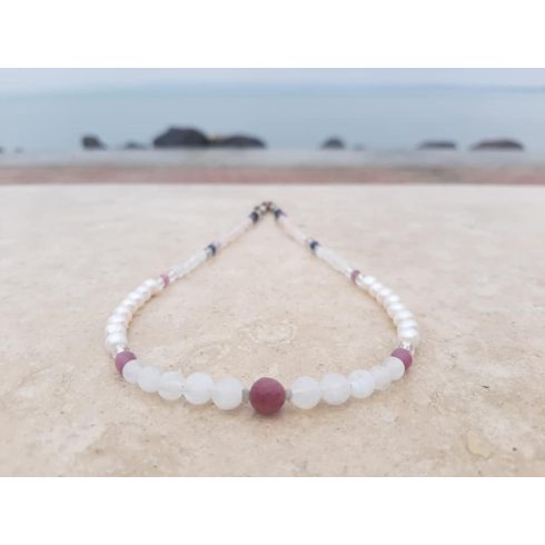 Életvirág nyakék Gyémánt nélkül, Rubin, Holdkő, Gyöngy, Hematit, Labradorit és Hegyikristályból