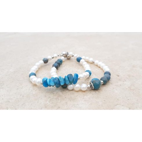 6-mm es Apatit kristályokból és 5-6-mm es tenyésztett Gyöngyökből készült, átlagos 15-15,5 cm es csuklóra.