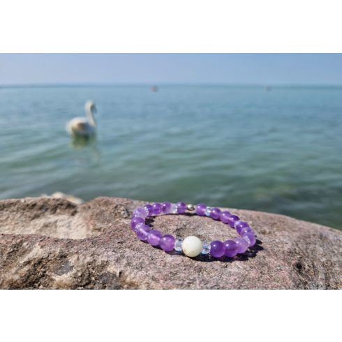 Ametiszt Holdkővel, Hegyikristállyal ezüst Tulipángyönggyel