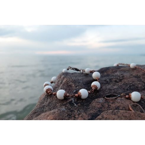 8- mm eg gyöngyökből, vörösréz ékszerdrótból és réz alkatrészekből készült,