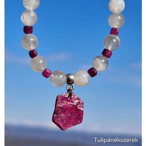 Vénusz karkötőt, különleges Rubin medál Holdkövek ölelésében, kis Rubin kockákkal