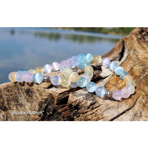 Angyalfény színes Szelenit karkötő ezüst Tulipángyönggyel