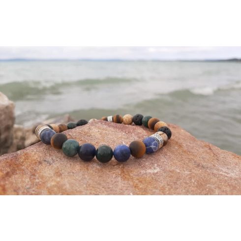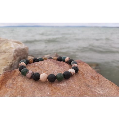 Önkifejezés - Magabiztosság karkötőpáros Lávakő, Jáspis, Szodalit, Tigrisszem, Mohaachát kristályokból