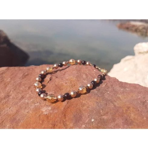 A karkötő 4 és 6-mm es gyöngyökből készült, sodronyra, nikkelmentes kapoccsal.