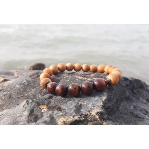 8-mm es gyöngyökből készült, lapos fűzőszálra duplán fűzve.