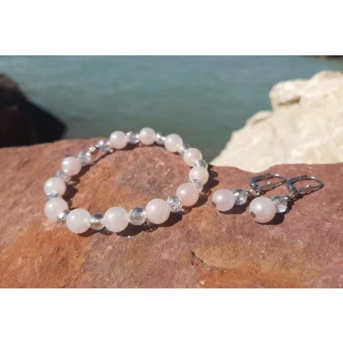 A fülbevaló 8 és 6-mm es gyöngyökből készült, nikkelmentes fülialappal.