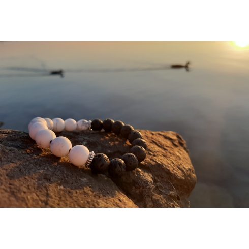Egyensúlyban az erő karkötő, Lávakőből és Howlit Kristályokból.