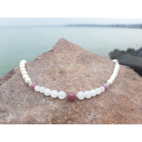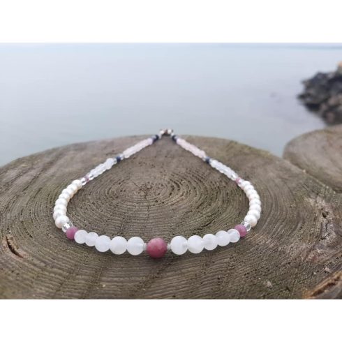 A nyakék 45 cm hosszú, 3-4-5-6-7-8 mm es gyöngyökből készült.