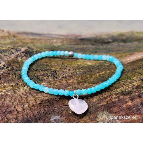 Amazonit karkötő, Rózsakristály szivecskével