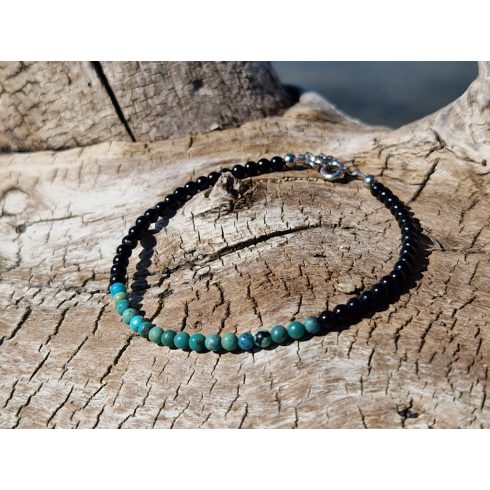 Bőség és szerencsehozó- önbizalom erősítő karkötő Türkiz és Onix kristályokból
