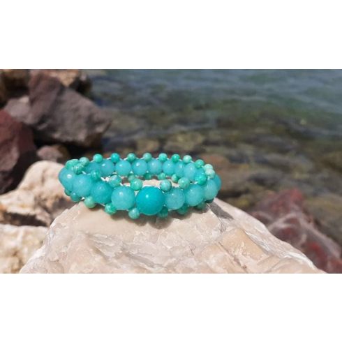 Sellőkarkötő, Amazonit és Achát kristályokból 3 soros