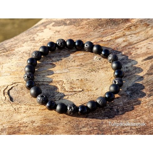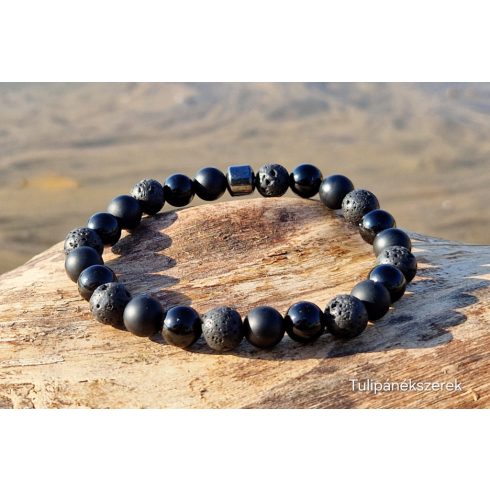 Erő- magabiztosság Apa- fia karkötőpáros , Onix, Lávakő és Hematit kristályokból