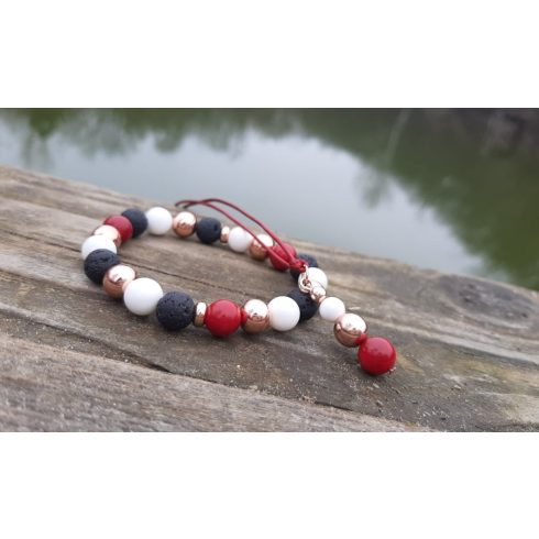 Nőiesség, elegancia karkötő, Lávakő, Korall, Jade és Hematit Kristályokból