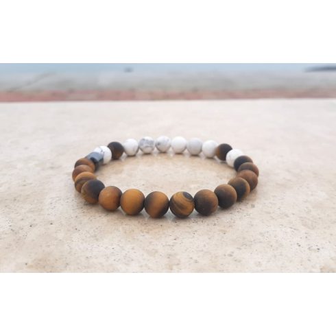 Egyensúly karkötő, Howlit, matt Tigrisszem és azúr Jade Kristályokból