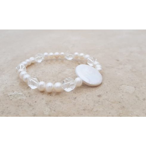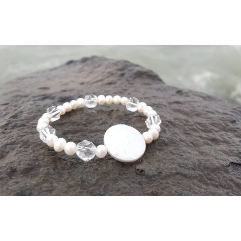 Tenyésztett Gyöngy és Biwa Gyöngy karkötő Hegyikristállyal A Gyöngy az örök Nőiesség időtálló, stílusos kifejezője. A tisztaság, jóság és a lelki fejlődés szimbóluma. Lelki békét biztosít, nyugalmat és kitartást ad viselőjének.