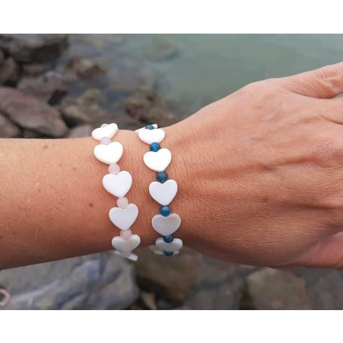 Szeretet szivcskés karkötő, Kagyló szivecskékből és Apatit Kristályokból