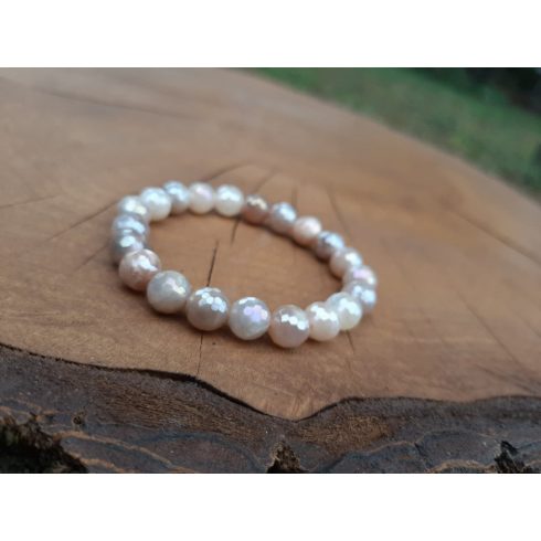 8-mm es gyöngyökből készült, lapos fűzőszálra duplán fűzve.